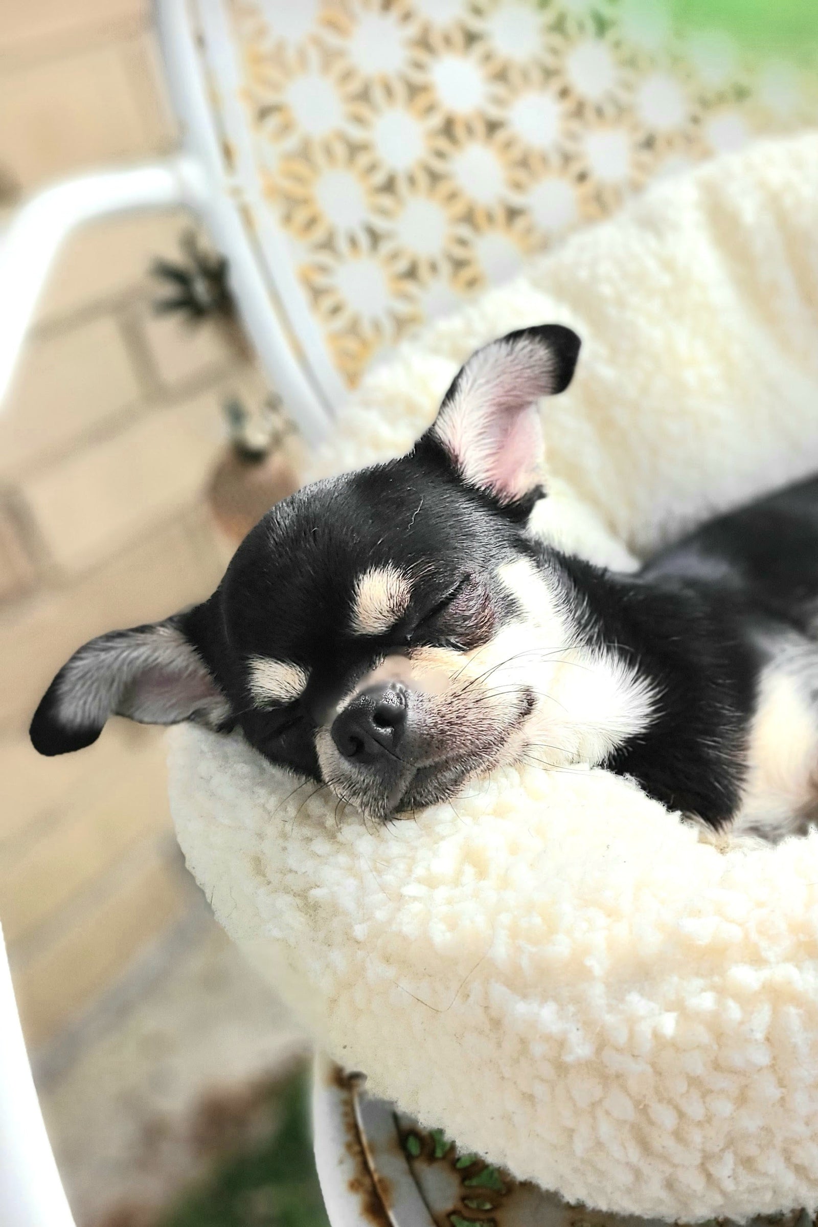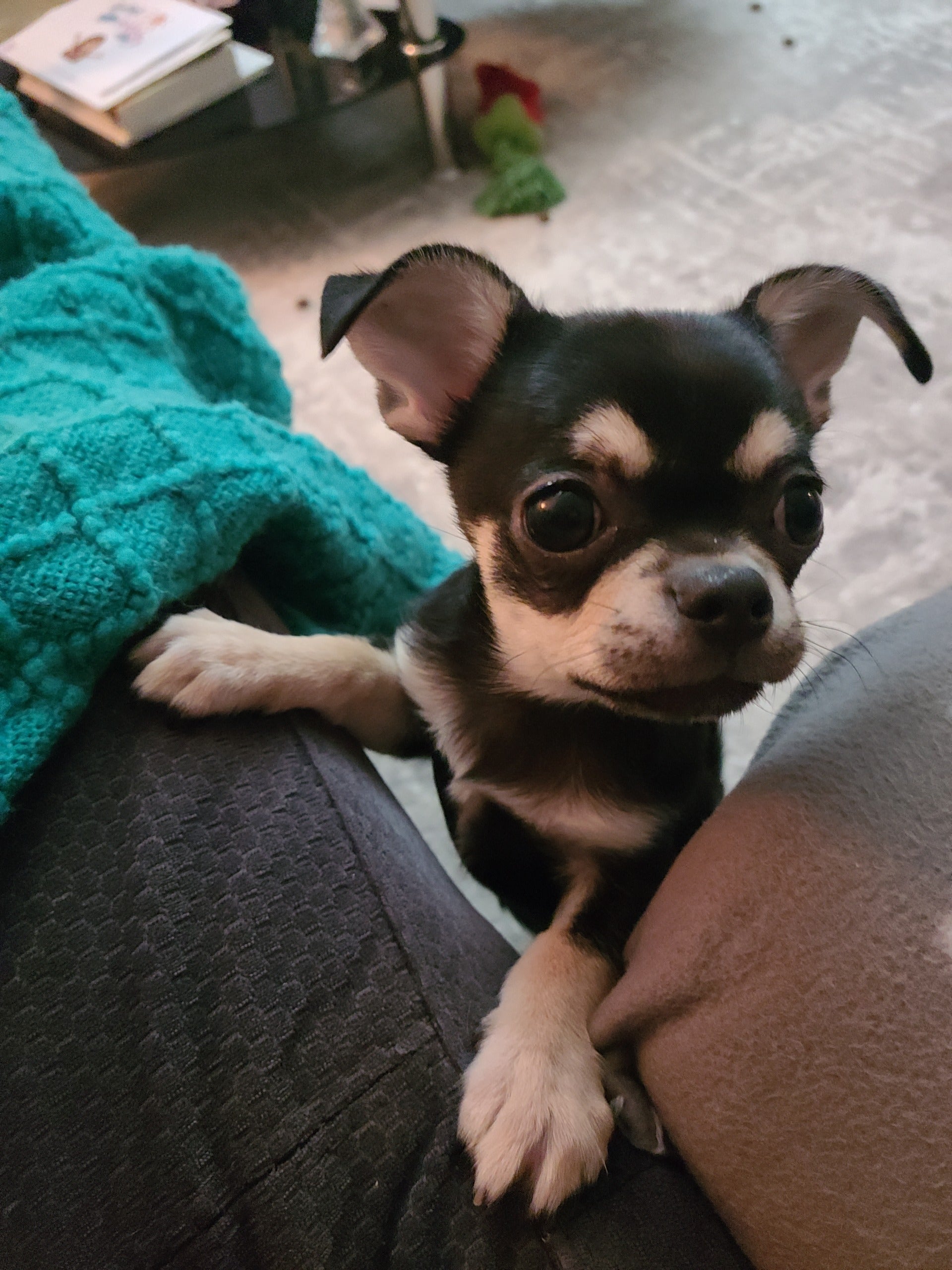 Un minuscule chihuahua chocolat noir aux sourcils beiges qui vous transpercent l'âme. Des oreilles disproportionnées par rapport à sa tête. Des yeux beaucoup trop expressifs. Une petite langue rose qui pend, comme s'il était en plein milieu d'une blague.